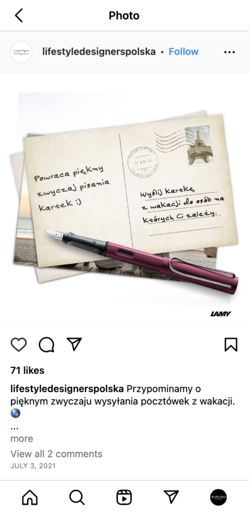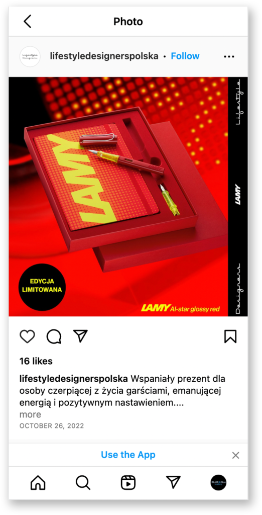 Creating posts and advertising campaigns related to promotions and marketing opportunities. Creating branding posts. Adapting materials from LAMY Germany.